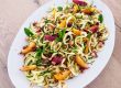 Couper des patates douces pelées en quartiers. Les assaisonner d’huile d’olive, paprika, cumin, de 2 dattes dénoyautées hachées, tamari et romarin. Enfourner 20′ à 180°. Les mélanger dans un saladier avec des haricots mange-tout blanchis et de l’oignon rouge cru. Assaisonner tout avec d’huiles de sésame et de colza, du poivre blanc moulu, du vinaigre de cidre BOUILLI, du persil, de la coriandre et de la menthe ciselés. Ajouter des dés de radis noirs, des graines de sarrasin, de chia, de courge, de tournesol et de sésame.