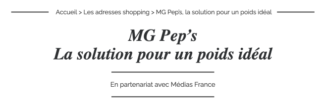 Le Figaro Madame Cette semaine, MG PEP’S est à l’honneur dans La Figaro Madame Loin des régimes punitifs et culpabilisants, la méthode MG Pep’s est spécialisée dans le rééquilibrage alimentaire basé sur le respect des mécanismes de la digestion.